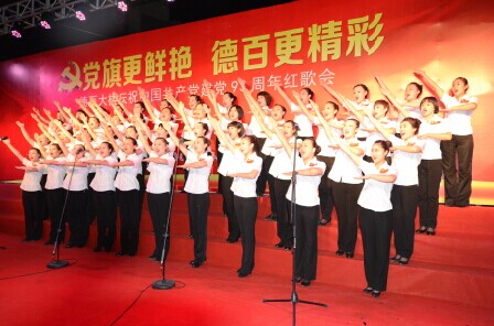 《沒有共產(chǎn)黨就沒有新中國》、《團(tuán)結(jié)就是力量》、《走向復(fù)興》等一曲曲經(jīng)典的紅色旋律激起了全體德百員工的共鳴,抒發(fā)了廣大員工熱愛黨、熱愛祖國、熱愛企業(yè)的紅色情懷,充分展示了德百人積極向上、昂揚(yáng)奮進(jìn)的良好精神風(fēng)貌,深刻表達(dá)了對黨、對祖國母親的無限熱愛和美好的祝福。