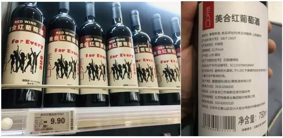 第一個新聞是葡萄酒自媒體“微釀”發(fā)布的一篇題為《9.9元葡萄酒驚現(xiàn)物美旗下超市!背標顯示:產(chǎn)地煙臺+總經(jīng)銷》的文章,事情總結起來就是:物美集團旗下的北京new mart品超市出售一款名為“美合”的葡萄酒,售價只有9.9元,產(chǎn)自中國煙臺。