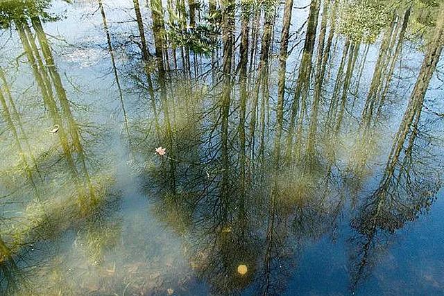 這張構圖方法,經(jīng)常被運用于倒影攝影中。尋找平靜的水面,以表現(xiàn)倒影為主;同時,又在畫面中保留部分地面景物作為陪襯。