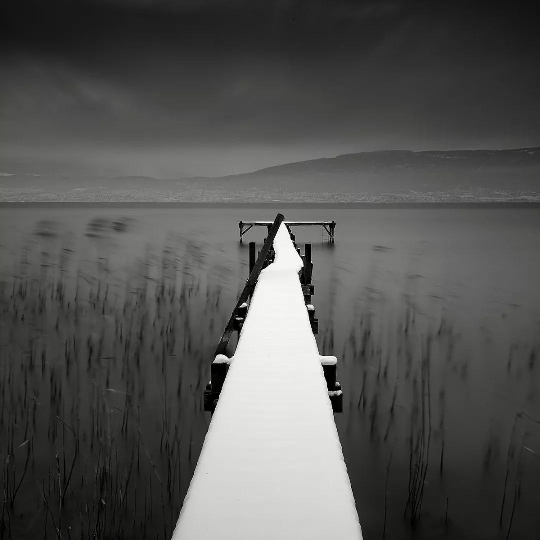 無論是拍攝點(diǎn)綴著零星樹叢的遠(yuǎn)景,白雪覆蓋的碼頭,還是陷入混沌狀態(tài)的建筑,佩萊格里尼運(yùn)用的長曝光拍攝手法都將這一處處風(fēng)景凝練成“固態(tài)”,也給我們的心靈帶來一種美與靜的享受。