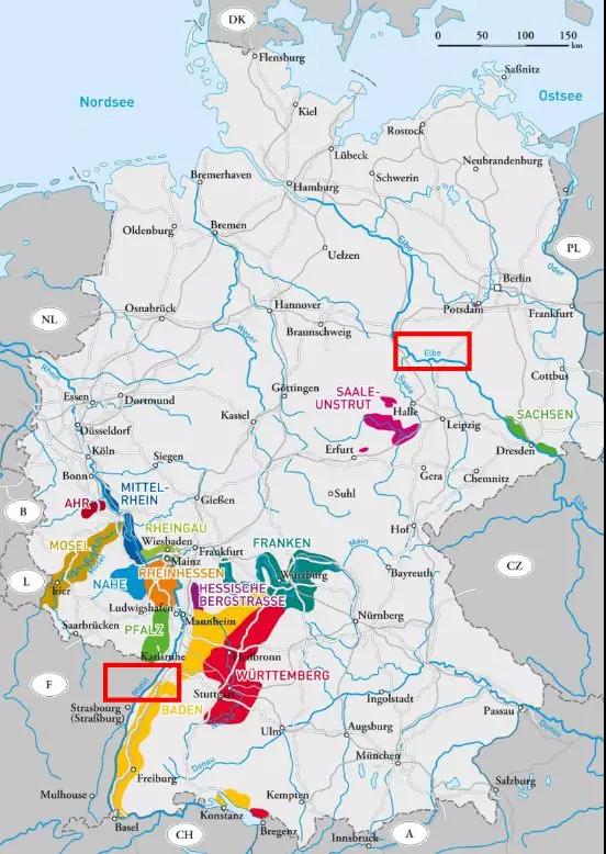除了南部略顯溫暖的巴登(大致氣候與香檳、勃艮第類似)外,其余產區(qū)幾乎全部都在最冷涼的A區(qū)。