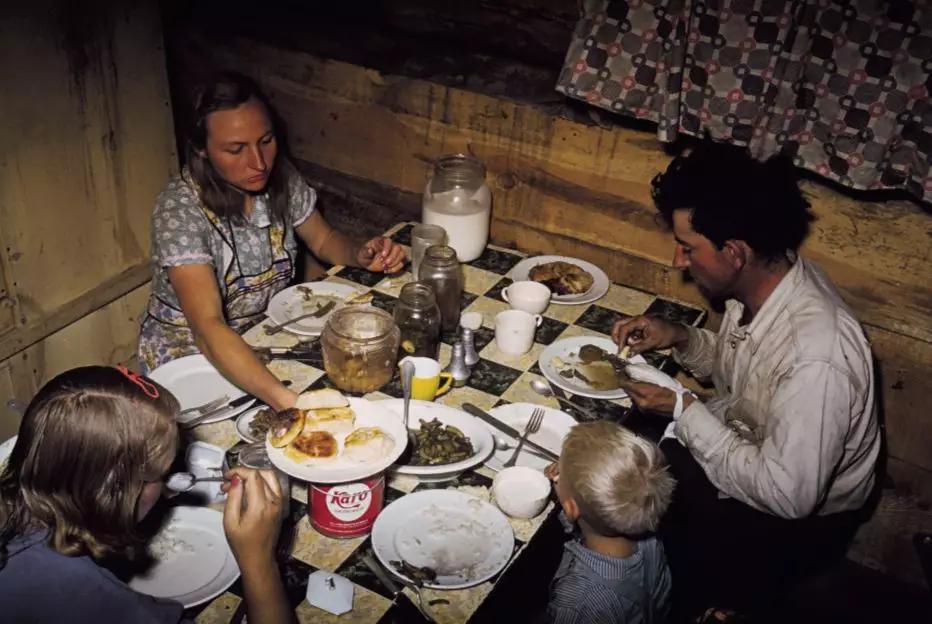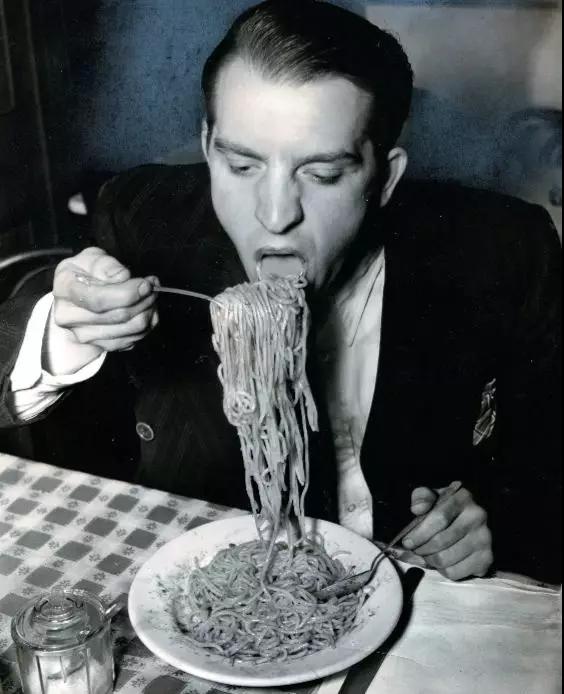 比如,維吉(Weegee)拍攝的《菲利普·斯塔佐在 WPA 上享受他最喜歡的食物,因為他聽說軍隊不太喜歡供應(yīng)意大利面》(Phillip J. Stazzone is on WPA and enjoys his favourite food as he'sheard that the Army doesn't go in very strong for serving spaghetti. 1940)以他慣常的戲劇化表達讓一副普通境界的吃相躍然紙上。維吉鏡頭下的美國在 1940年尚有一盤意大利面,拉塞爾·李(Russell Lee)在同一年份走入美國新墨西哥州的鄉(xiāng)下,便還能看見大蕭條最后的尾聲:小城市普通美國家庭并不豐盛的晚餐。20年后,同樣在美國,食物上的局促有了很大改觀,但更直觀的窘境達到了高峰: 種族問題。佚名攝影師拍下的《午餐吧臺的罷工》(Lunch Counter Sit-in) 即顯示了這個問題。兩名美國黑人大學生在“只準白人” (whites-only)的餐廳吧臺上學習,兩名白人女服務(wù)員在觀望他們的同時拒絕為他們服務(wù)。冰冷拒絕且?guī)猓欠浅<兇獾某鸷薇砬?。四個人,圍桌,卻沒有可供享用的食物。種族主義作為曾經(jīng)橫亙在他們之間無形的高墻,直到今天都還有殘垣斷壁留存,化為低矮的絆腳石。