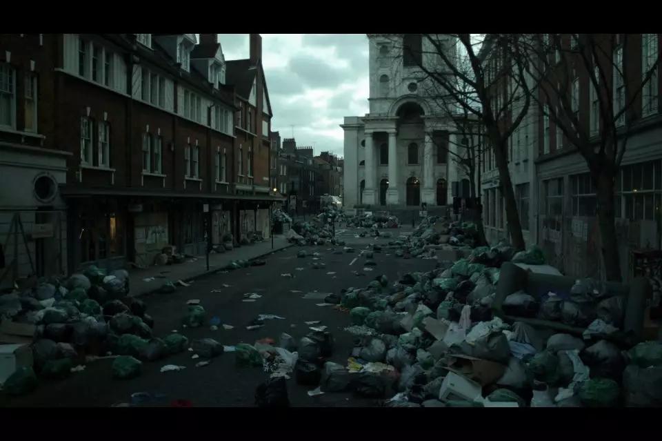 影片中疫情持續(xù)下去的情況是:在26天里,經(jīng)濟回到配給制,人們?yōu)榱祟I(lǐng)政府配給的食物排起長長的隊伍。