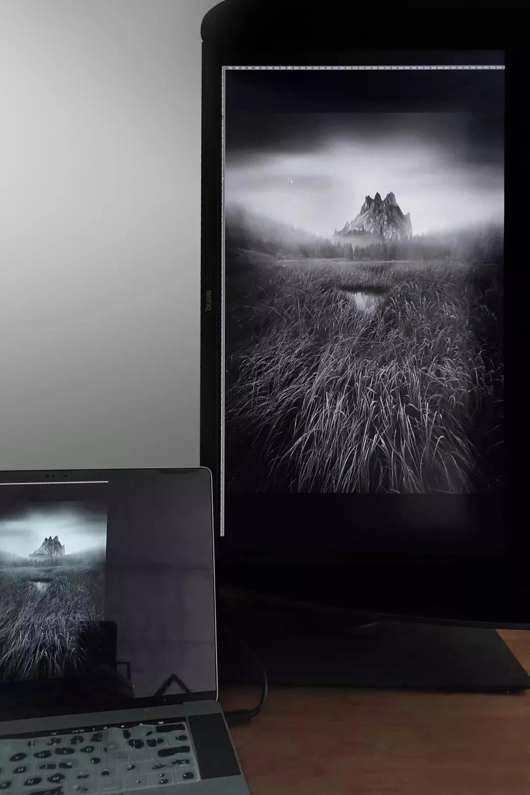 另外,明基SW270C還配有不同顯示模式協(xié)助修圖,例如很多人像攝影師非常偏愛的黑白模式,可以直接將屏幕調(diào)整黑白調(diào)節(jié)光影,免去新建圖層等繁瑣操作。