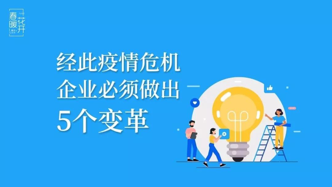 新冠疫情給每個(gè)企業(yè)帶來(lái)巨大的危機(jī),只有那些正確認(rèn)知危機(jī)并做出徹底改變的企業(yè),才能轉(zhuǎn)危為機(jī),成為真正的強(qiáng)者。如何把疫情危機(jī),變成企業(yè)自我變革升級(jí)的契機(jī),需要企業(yè)做出5個(gè)方面的變革。
