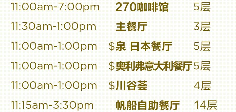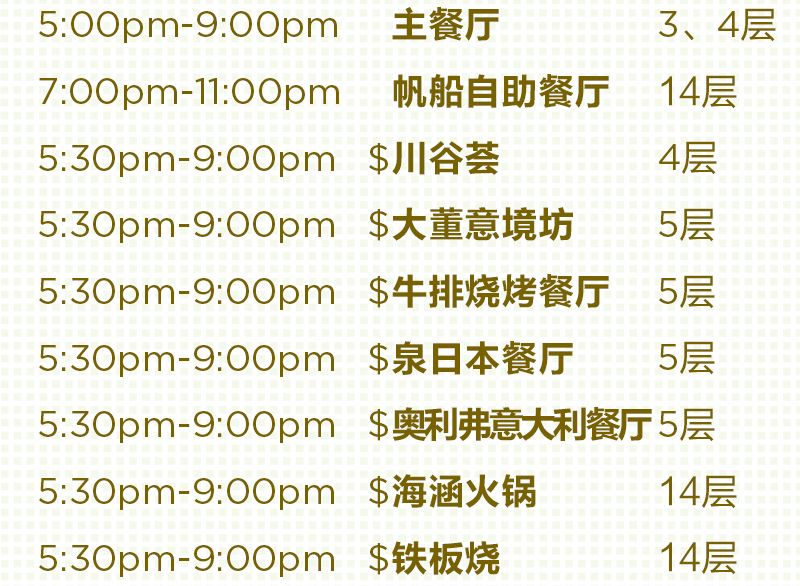 *帶$符號(hào)的餐廳為收費(fèi)餐廳。