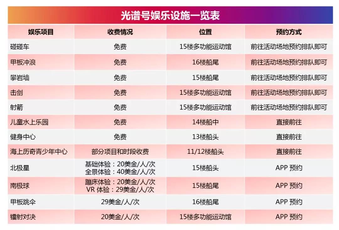 光譜號(hào)的娛樂(lè)設(shè)施,和量子號(hào)相比有增無(wú)減,受歡迎的程度也不用小編多說(shuō)啦!上船之后要是想要玩一些項(xiàng)目的話,記得及時(shí)預(yù)約哦。