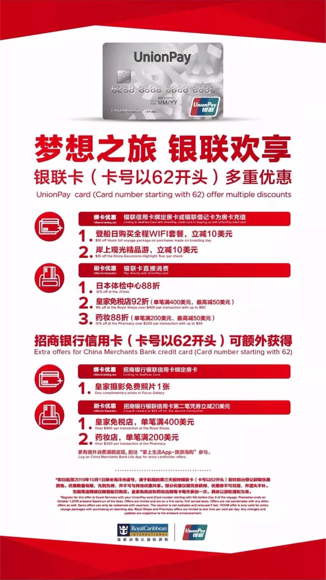 免稅店均支持支付寶和微信支付,現(xiàn)在上船還可以享受銀聯(lián)62卡的專屬優(yōu)惠。
