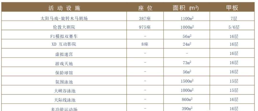 在意大利知名兒童品牌智高(CHICCO)細(xì)心安全的設(shè)施和目不暇接的可愛玩具中,3 歲以下的寶 寶盡情探索童真的小宇宙;3-11 歲的寶貝能再繽紛的樂高(LEGO)海上樂園中組裝自己的海上城堡,12-17 歲的青少年更設(shè)有各種球類運動兼容的多功能運動場、82 米喜馬拉雅滑水道和 F1 模擬 賽車等,讓青春期的小大人在高端安全的空間中自在冒險。