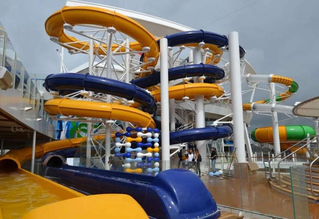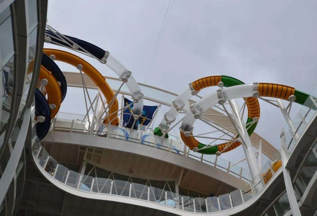 “海洋和諧號(hào)”是第一艘考慮到滑水道設(shè)計(jì)的皇家加勒比郵輪。2016年1月,皇家加勒比在“海洋自由號(hào)”上進(jìn)行滑水道測(cè)試,然后在海洋和諧號(hào)上實(shí)現(xiàn)。
