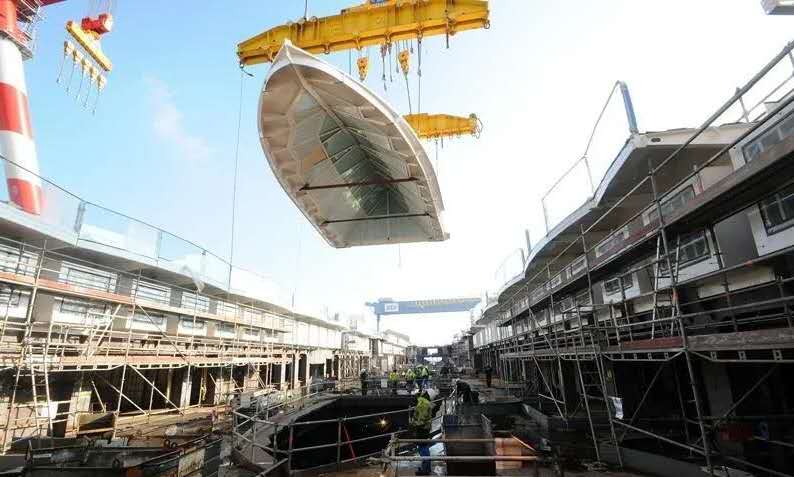 作為造船人,對(duì)最大郵輪的偏好是不言而喻的。因?yàn)榇笫鞘艿胶芏嘁蛩叵拗频?,有技術(shù)上的,現(xiàn)有規(guī)范方面的,也有設(shè)備條件和自然條件的限制。所以,海洋綠洲級(jí)郵輪,只在芬蘭土爾庫的船廠(現(xiàn)在的MEYER Turku)和STX法國船廠(STX France)(現(xiàn)在的法國大西洋船廠Chantiers de l’Atlantique)建造過。著名的德國邁爾船廠(Meyer Werft) 由于位于埃姆斯河下游,2002年9月之后船只可以通過的水深才達(dá)到8.50米,寬度為63.5米。而海洋綠洲級(jí)郵輪的最大寬度為66米。法國大西洋船廠為了建造海洋綠洲級(jí)郵輪,也專門添置了設(shè)備。