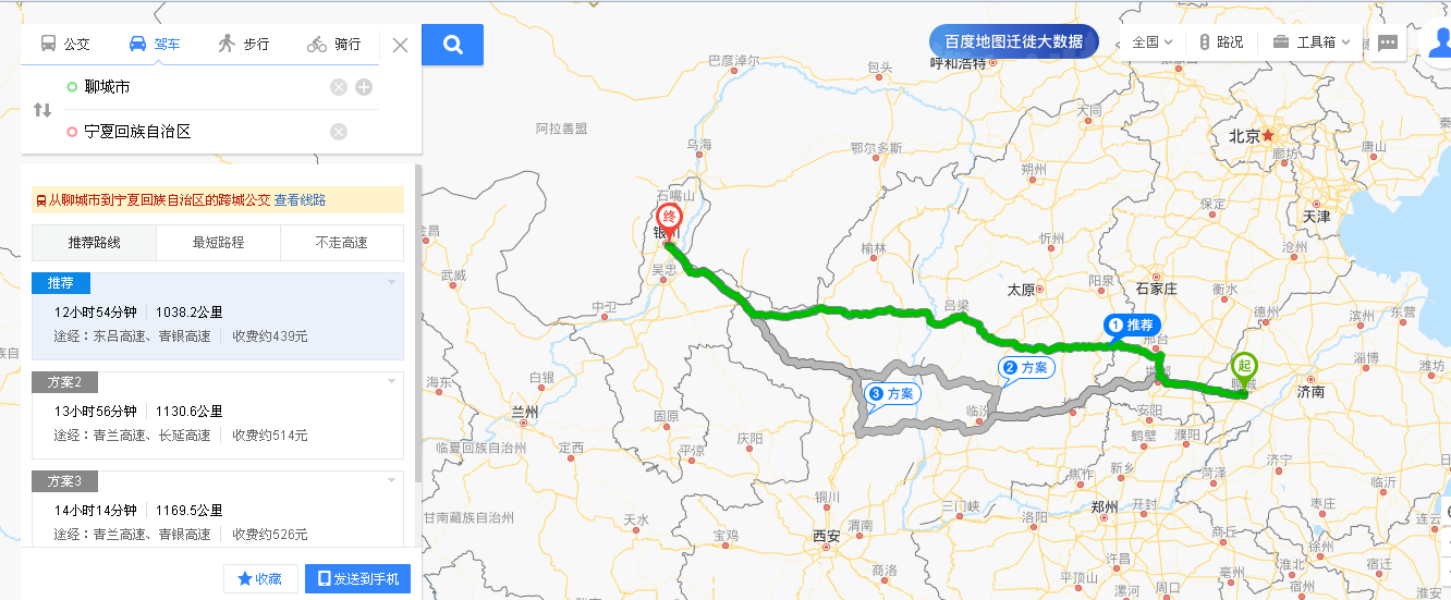 D1:聊城——寧夏銀川(約1038.2公里)