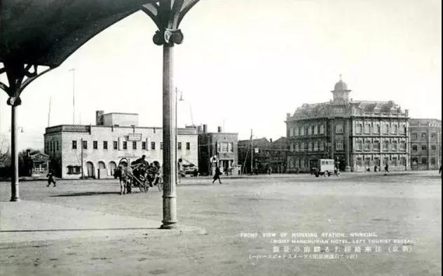 1935年是的新京站(長(zhǎng)春站)前東側(cè),左一二層建筑即為日本國(guó)際觀光局新京支社