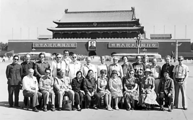 1975年國(guó)旅總社接待聯(lián)邦德國(guó)施瓦本國(guó)際旅行團(tuán),在北京天安門(mén)前留念