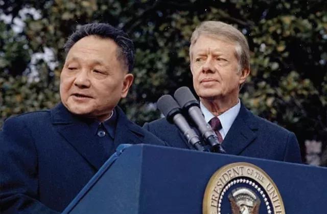 1979年,中國(guó)副總理鄧小平和美國(guó)總統(tǒng)吉米?卡特在華盛頓會(huì)面