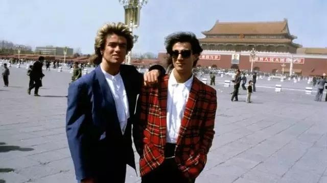 1985年,第一支來(lái)中國(guó)演出的西方搖滾樂(lè)隊(duì)Wham!在天安門(mén)前合影