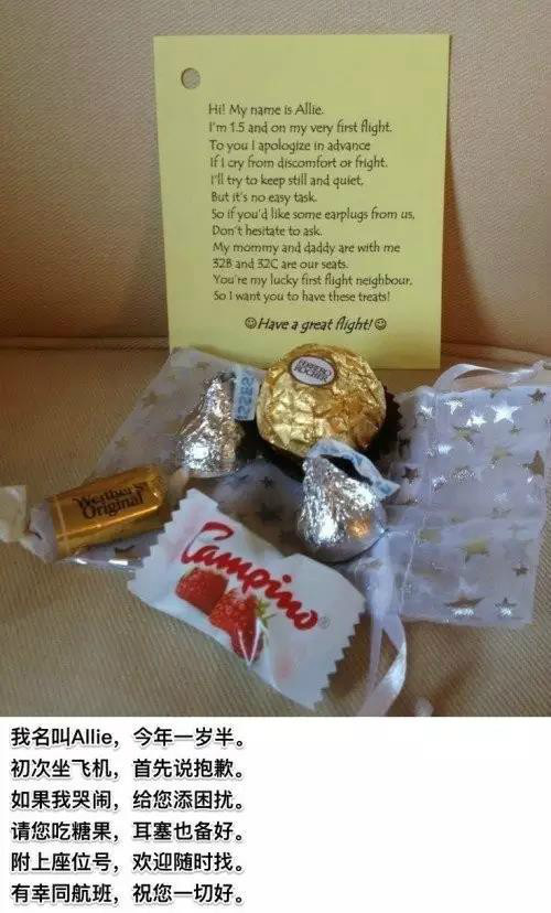 寶寶哭鬧的話難免周圍的乘客會(huì)有意見,爸爸媽媽們可以提前準(zhǔn)備一些小糖果小餅干或者是耳塞之類的,在飛機(jī)起飛前送給周圍的乘客。