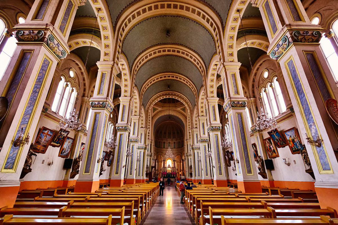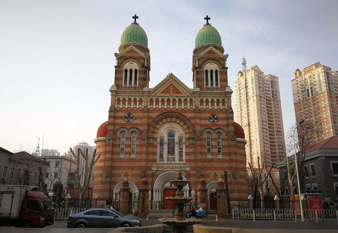 天津市最大的天主教堂,也是天主教天津教區(qū)主教座堂,典型巴洛克式風(fēng)格的建筑。整體建筑呈“品”字形,樓座以黃、紅花磚砌成,上砌翠綠色圓肚型尖頂,檐下為半圓形拱窗。教堂每日早晨舉行宗教活動(dòng),逢星期日及天主教節(jié)日,早晚皆有宗教活動(dòng)。走出西開教堂便是國際風(fēng)情街,散布其間大大小小的咖啡廳、西餐廳,很有小資味道。