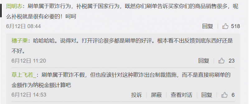 要求之前有過刷單對不上賬的一些店鋪結(jié)合自己實際情況,即刻補繳稅款,之前刷多少這次補繳多少,這么一搞,那些之前瘋狂刷單的店鋪怕是要賠到哭了!