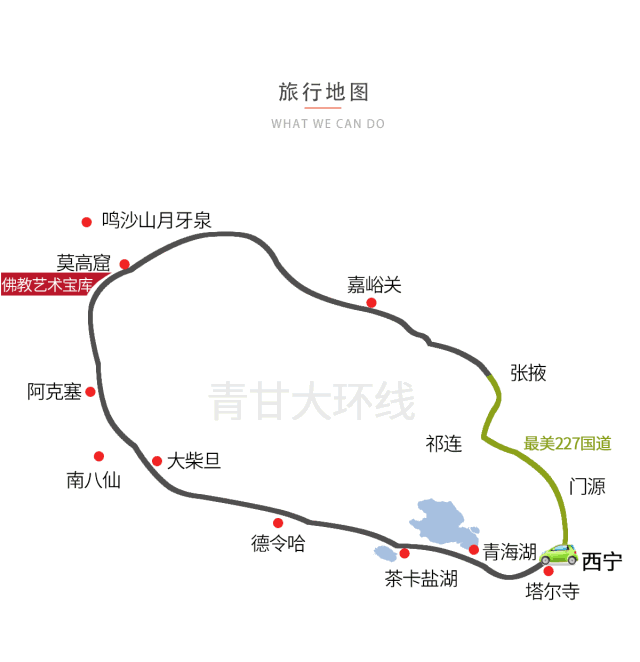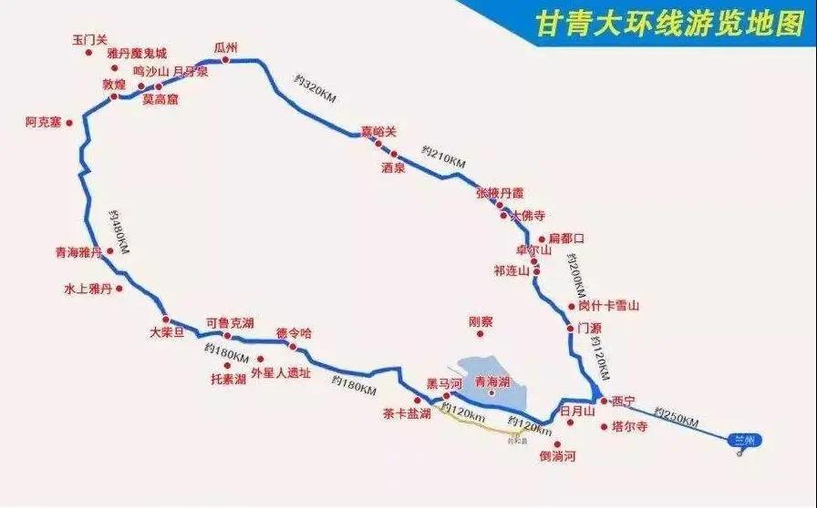 聊城-綏德-海東-塔爾寺-青海湖-茶卡-德令哈-可魯克湖-翡翠湖-大柴旦-南八仙-石油小鎮(zhèn)-陽關-敦煌-嘉峪關-張掖-門源-白銀-呂梁-聊城