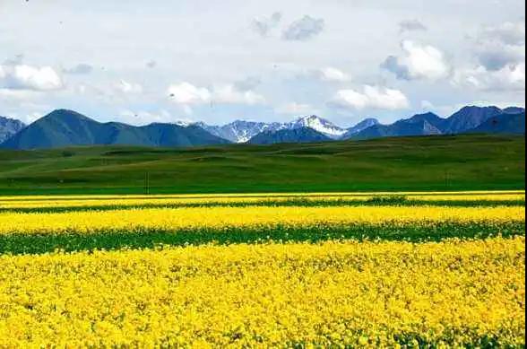 門源縣是北方小油菜發(fā)源地,是全國乃至全世界最大的小油菜種植區(qū),種植面積達50萬畝。這里油菜花的種植范圍西起浩門河畔的青石嘴,東到大通河畔的玉隆灘,北到與甘肅省交界的冷龍嶺,南至高峻的大坂山,綿延數(shù)十公里。