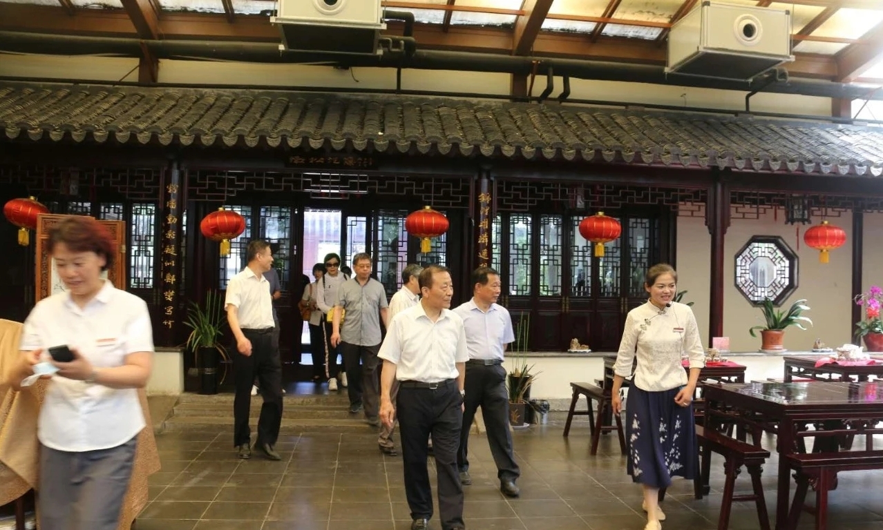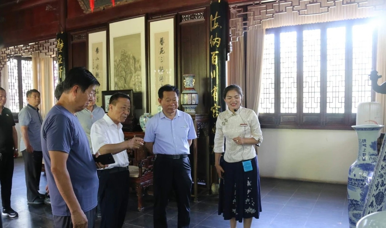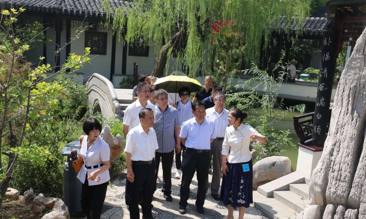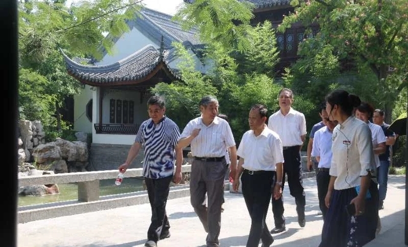 在檢查調研過程中,杜秘書長一行邊實地檢查調研,邊聽取介紹,并不時詢問了解相關情況,對宛園突出文化靈魂,精造旅游載體的做法給予高度評價,他們認為:“宛園”是一家“江南古建,水鄉(xiāng)風格”的蘇式園林。它匯集眾家名園精華,布局精巧,疏密得當、移步易景、曲徑通幽;磚雕、木雕、泥雕、青磚灰瓦、奇石遍布,盡顯靈秀氣息;契合了“山水詩、山水畫、山水園”相融合的意境,完美地實現(xiàn)了“千景匯集小天地,千幅圖畫在園中”的藝術效果。中國運河名揚天下,宛園美景享譽四方。同時,他們高屋建瓴,指出了園林建設中,不被人們意識的瑕疵,提出了頗有見地的指導意見和極具針對性的建設性建議。這些意見和建議對“宛園”的進一步提高、完善和發(fā)展將起到積極的推動作用。