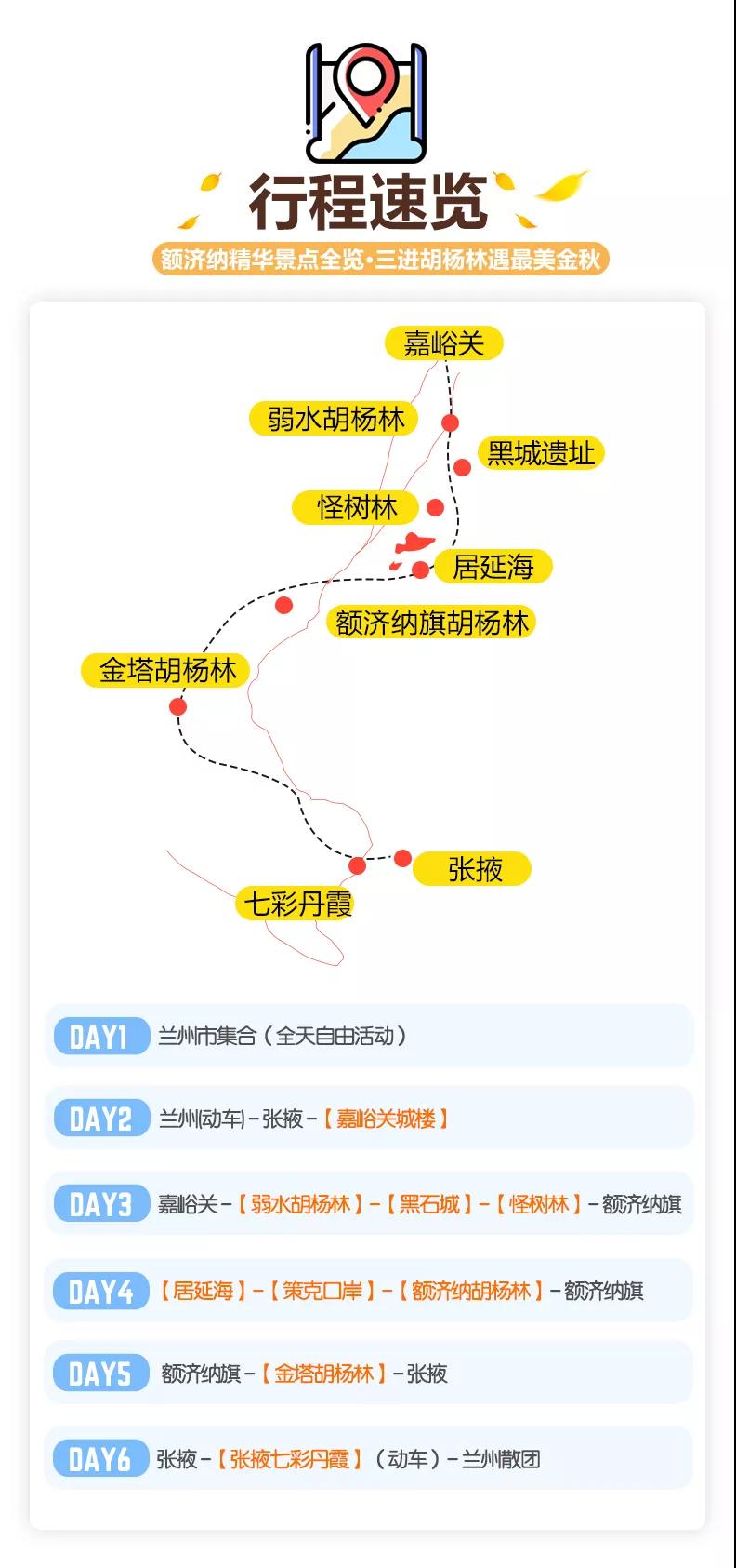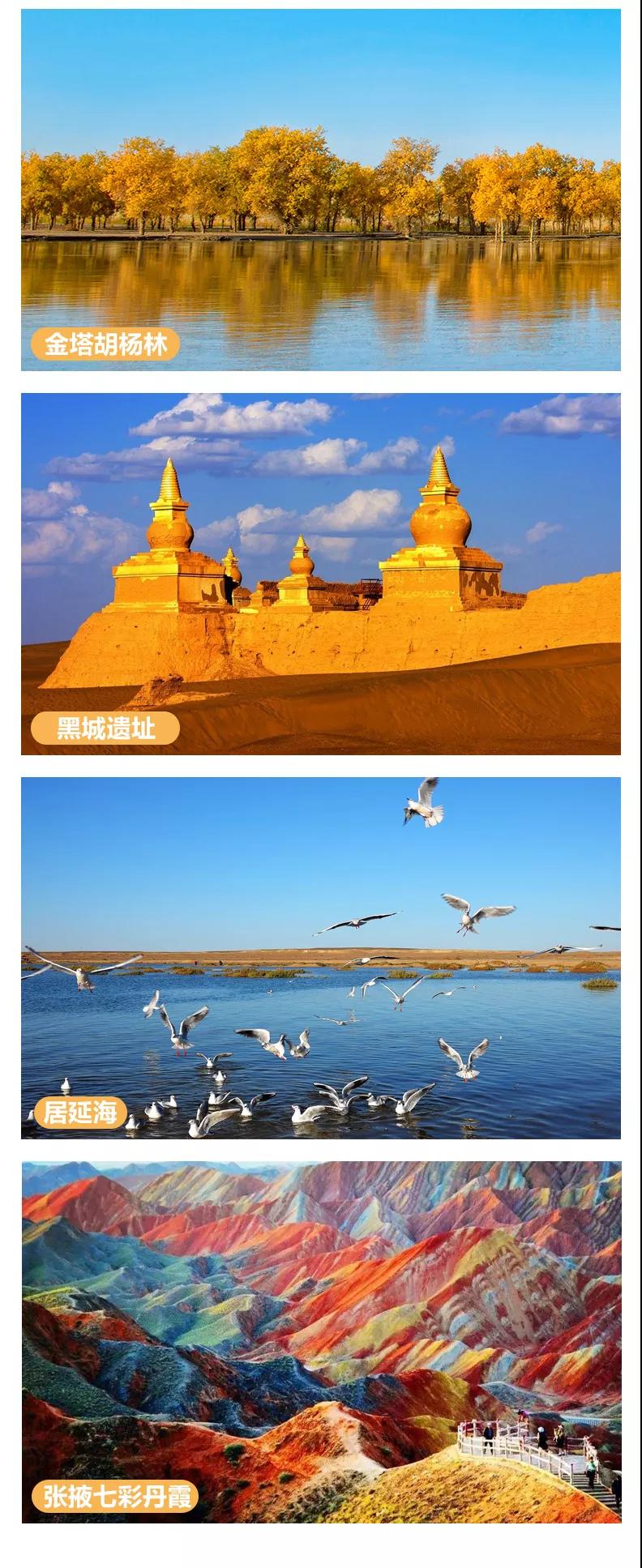 門票:含額濟納胡楊林、黑城-怪樹林-弱水胡楊林門票(含景區(qū)交通車)、居延海(含景區(qū)交通車)、張掖七彩丹霞地貌(含景區(qū)交通車)、嘉峪關城樓門票、策克口岸門票。
