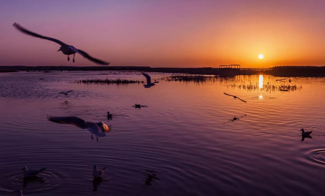 今天辛苦大家起個早床,一起早起前往【居延海】拍攝日出,日出大概在7點到7點半左右,居延海是《水經注》里提到的弱水流沙之地,也是土爾扈特族發(fā)展的搖籃,現在是一片長滿蘆葦的海子,日出時分場面相當壯闊宏大。當東方的太陽越出水面,霞光四射,水天瞬間都染成通紅,滿湖面的鷗鳥此起彼落,翱翔翻飛,海子周邊的蘆葦蕩隨風飄動,這副日出盛景一定會讓你不悔起得早。