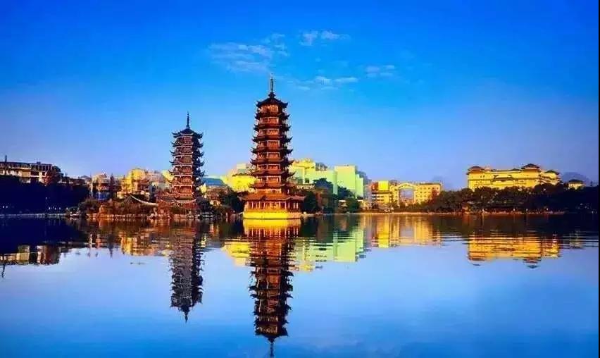 桂林“一江四湖”,即指漓江、木龍湖(含鐵佛塘)、桂湖、榕湖、杉湖,其環(huán)城水系全長(zhǎng)7.33公里,水面面積38.59萬(wàn)平方米。該工程最早形成于北宋年間(960-1127年),當(dāng)時(shí)榕湖、杉湖、桂湖上舟楫縱橫,游人如織,興盛一時(shí)。桂林一江四湖是構(gòu)成桂林山水美景的重要組成部分。