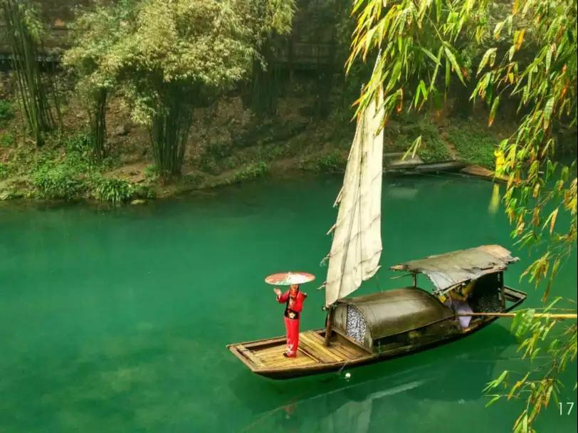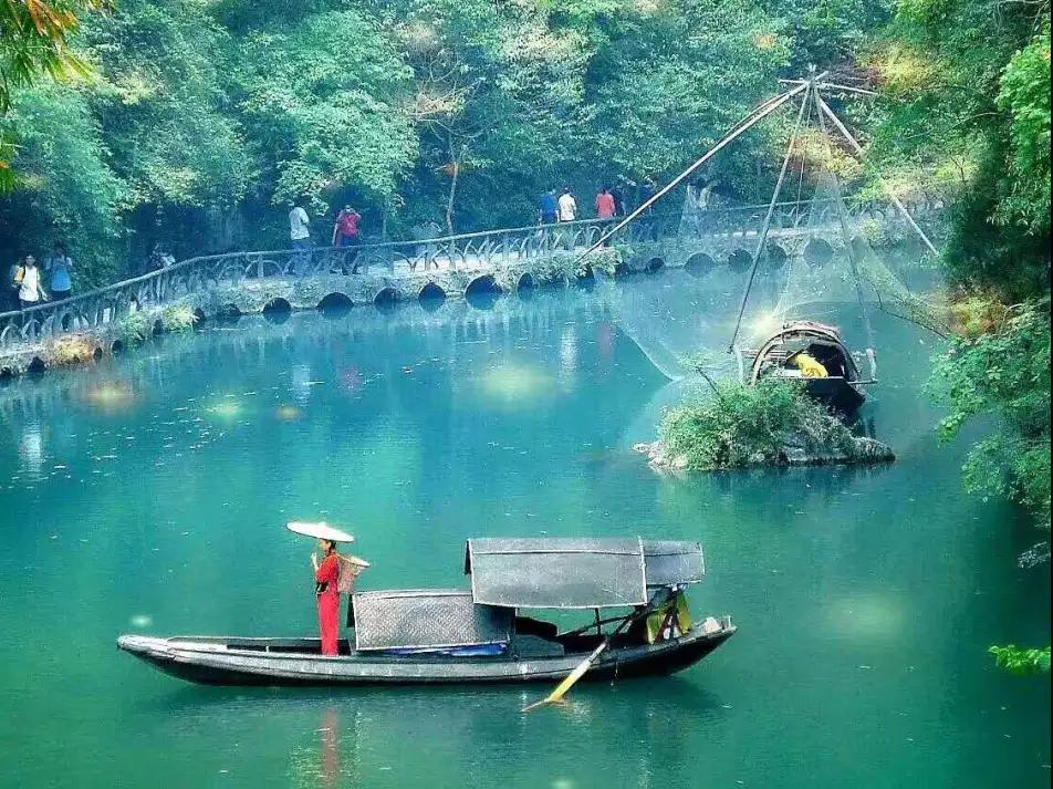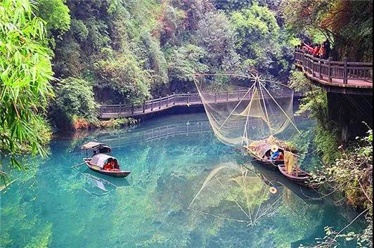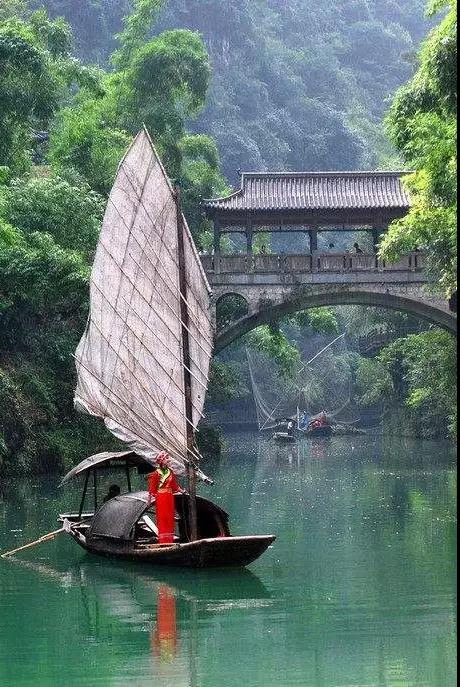 【三峽人家風景區(qū)】依山傍水,風情如畫:傳統(tǒng)的三峽吊腳樓點綴于山水之間,久違的古帆船、烏篷船安靜地泊在三峽人家門前,溪邊少女揮著棒槌在清洗衣服,江面上悠然的漁家在撒網(wǎng)打魚……千百年來流傳不衰的各種習俗風情體現(xiàn)著峽江人民的質樸好客。
