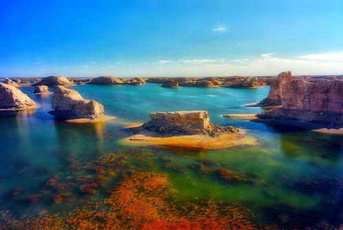 近距離感受俄博梁雅丹你會發(fā)現(xiàn),這里的景色不會重疊,一步一景,景景相應(yīng),宛如古代城堡的城墻,筒形拱頂,眺望冷湖俄博梁雅丹,巍然屹立,氣勢磅礴。猶如古堡要塞,形成了一道山上有山,嶺中有嶺的獨特風景,她的原始神秘、她的千姿百態(tài)、粗曠荒蠻讓人恍惚來到了一個與世隔絕的仙境,又仿佛面對一個遠古的夢幻。