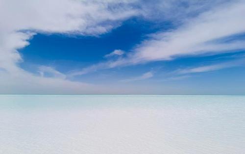 【茶卡鹽湖】被國家旅游地理雜志評為“人一生必去的55個地方”之一,這里的采鹽歷史非常悠久,湖水含鹽量很大,湖面上會自然結(jié)晶,一片純白。結(jié)晶之上是一層薄薄的露水,將天空、云朵和對岸的山都倒映在白色的湖里,非常漂亮,所以也被稱為“中國的天空之境”。大家可以乘坐景區(qū)內(nèi)的小火車前往景區(qū)深處游玩,如果不乘坐小火車,沿著鐵軌向湖深處散散步拍拍照片也是非常愜意的。