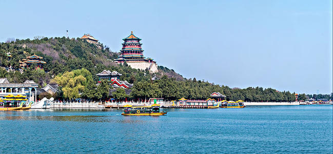 頤和園,中國清朝時期皇家園林,前身為清漪園,坐落在北京西郊,距城區(qū)15公里,占地約290公頃(2.9平方千米),與圓明園毗鄰。它是以昆明湖、萬壽山為基址,以杭州西湖為藍本,汲取江南園林的設(shè)計手法而建成的一座大型山水園林,也是保存最完整的一座皇家行宮御苑,被譽為“皇家園林博物館”。