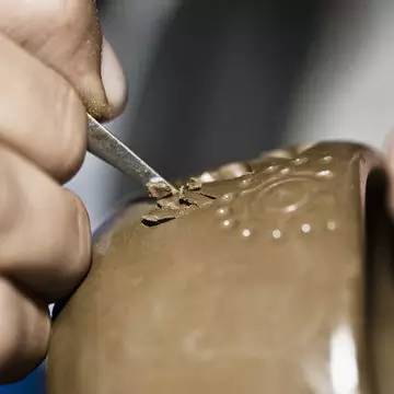 歷經(jīng)了揉泥、拉胚、晾胚、修胚、雕刻、素?zé)?、多次施釉、釉燒、火照、開窯等幾十道工序和數(shù)十個技術(shù)環(huán)節(jié)點。