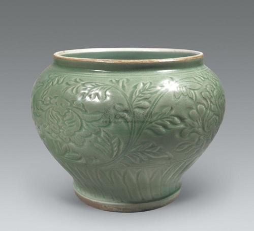 從紋飾看,宋代龍泉窯器物純以釉色取勝,紋飾裝飾極少,即便有紋飾也多是刻花裝飾輔以篦點和劃紋,以及波浪、云紋、蕉葉等圖案,構(gòu)圖極為簡練,手法生動。而明代器物上的紋飾,裝飾較為繁復(fù),圖案帶有了明顯的象征意義,是明代龍泉窯器物比較常見的裝飾手法。