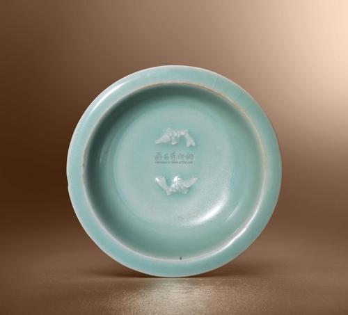 粉青色正是鐵還原的標(biāo)準色。由于釉藥下注,往往在轉(zhuǎn)折部分釉藥較薄,露出白色胎骨,成一條白線,即就是所謂的“出筋”;這種出筋,也往往出現(xiàn)在凸雕的花紋上。弟窯還有翠青色,濃淡不一;豆綠色,顏色與汝窯器大致相同,往往不易分辨。
