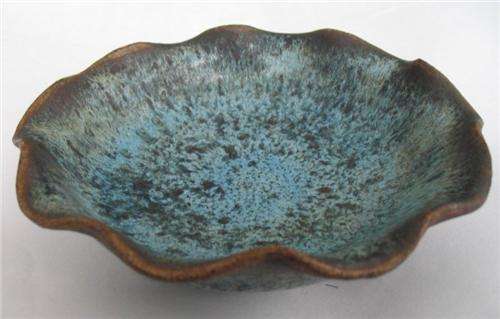 采用簡單的工藝處理,卻達到了給人以美感的藝術(shù)效果。更引人注目的郟縣黃道窯所燒制的黑釉藍斑器,在白釉上施青藍彩斑,有其獨特的藝術(shù)風(fēng)格。其窯變工藝可能是在蘸釉之后,采用涂彩或點彩的方法,以 加重色彩,經(jīng)過窯變,使其形成塊狀的斑彩,這種塊斑,形狀各異,變化萬千,黑里泛藍,或黑釉黃斑,恰似金光閃閃,獨具風(fēng)姿。