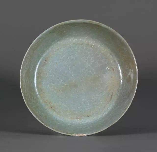 這件汝窯青瓷盤釉質(zhì)瑩潤,其質(zhì)感似絲綢般柔美。