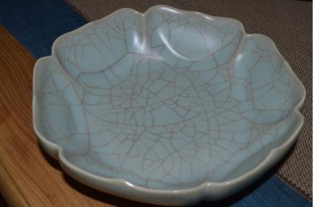 汝瓷開片堪稱一絕,開片的形成,開始時是器物于高溫焙燒下產(chǎn)生的一種釉表缺陷,行話叫“崩釉”。汝窯的藝術(shù)匠師將這種難以控制的、千變?nèi)f化的釉病,通過人為地操作轉(zhuǎn)換為一種自然美妙的裝飾,而且控制的恰到好處,可謂巧奪天工的絕活。釉面開片較細(xì)密,多呈斜裂開片,深淺相互交織疊錯,像是銀光閃閃的片片魚鱗,或呈蟬翼紋狀,給人以排列有序的層次感。釉中細(xì)小沙眼呈魚子紋、芝麻花和蟹爪紋。并有典型的桔皮釉、冰片釉、茶葉沫,部分柳條紋狀的開片是因手拉坯轆轤旋轉(zhuǎn)時,使泥料分子排列結(jié)構(gòu)朝一定方向而形成的現(xiàn)象。
