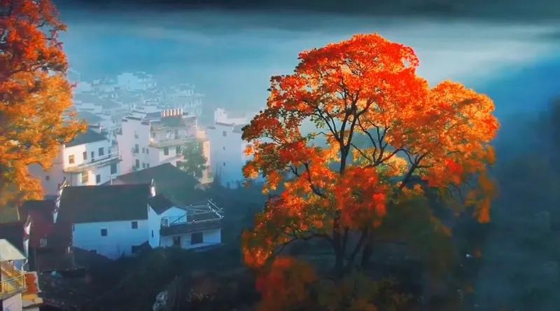 婺源的紅秋天,美哭了全世界。清晨,云霧彌漫,炊煙裊裊,在空中肆意流動(dòng)變幻著各種形態(tài),如一幅未干的水粉畫。