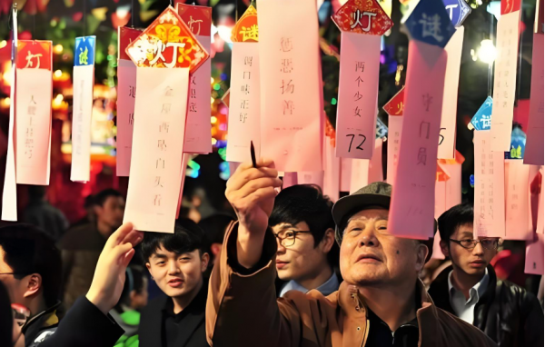 “猜燈謎”又叫“打燈謎",是元宵節(jié)后增的一項活動,燈謎最早是由謎語發(fā)展而來的,起源于春秋戰(zhàn)國時期。它是一種富有譏諫、規(guī)戒、詼諧、笑謔的文藝游戲。謎語懸之于燈,供人猜射,開始于南宋?!段淞峙f事·燈品》記載:"以絹燈剪寫詩詞,時寓譏笑,及畫人物,藏頭隱語,及舊京諢語,戲弄行人。"元宵佳節(jié),帝城不夜,春宵賞燈之會,百姓雜陳,詩謎書于燈,映于燭,列于通衢,任人猜度,所以稱為"燈謎"。如今每逢元宵節(jié),各個地方都打出燈謎,希望今年能喜氣洋洋的,平平安安的。因為謎語能啟迪智慧又饒有興趣,所以流傳過程中深受社會各階層的歡迎。