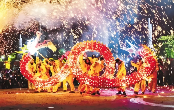 【湖南省】常德上元各家以椒為湯,加入韭菜儆果諸物款待客人,稱為“時湯”。新田縣游完龍燈后,將龍燈付之一炬,稱為“送災”。
