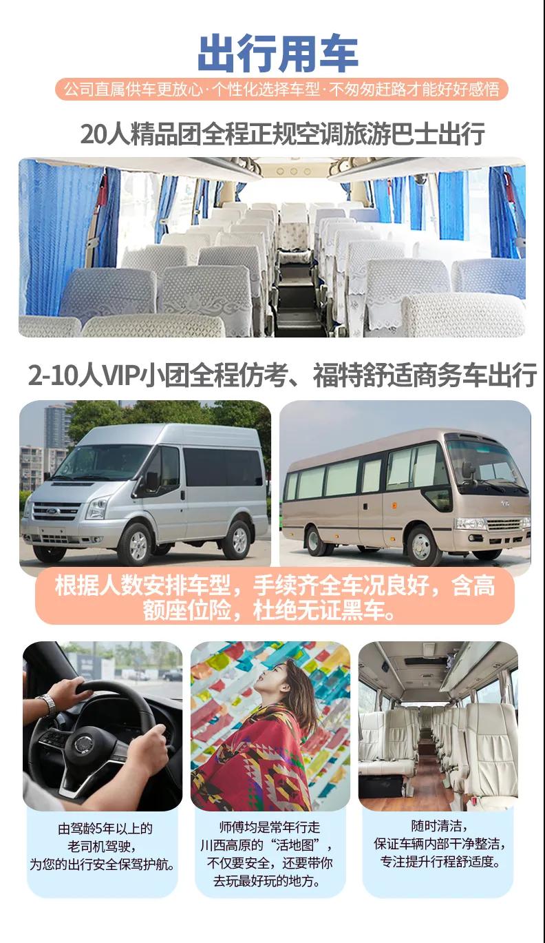 1、關(guān)于車輛交通:目前四川旅游市場8座以下車輛無法辦理旅游牌照,請游客知悉,以此理由提起的投訴我方拒不受理,望您諒解。