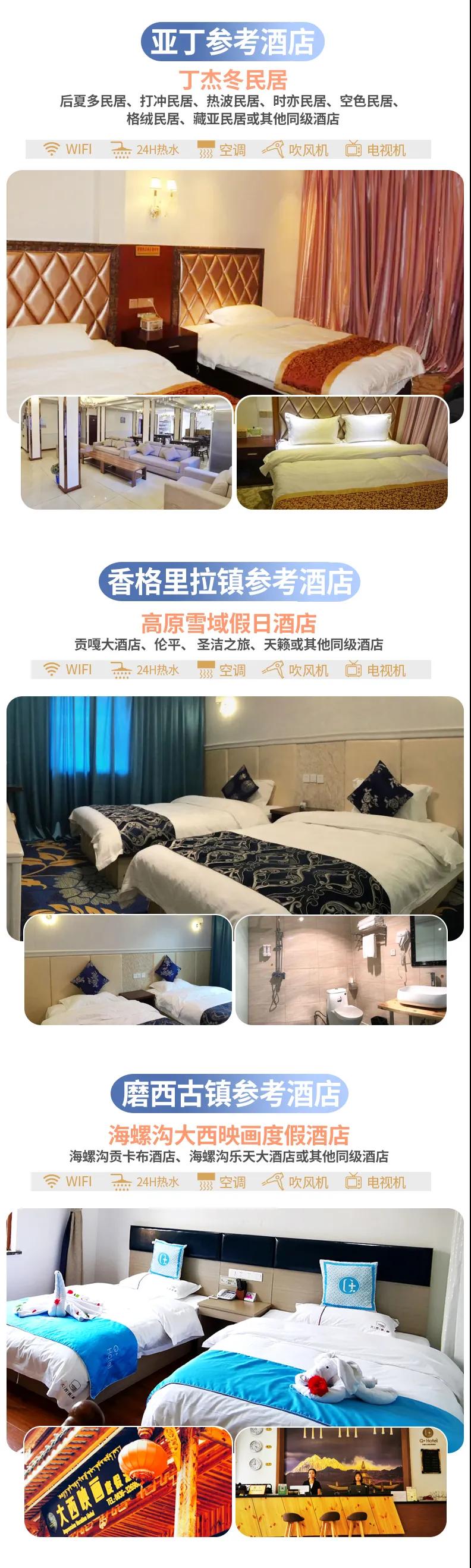 l 磨西古鎮(zhèn):海螺溝大西映畫度假酒店、海螺溝貢卡布酒店、海螺溝樂天大酒店或其他同級酒店