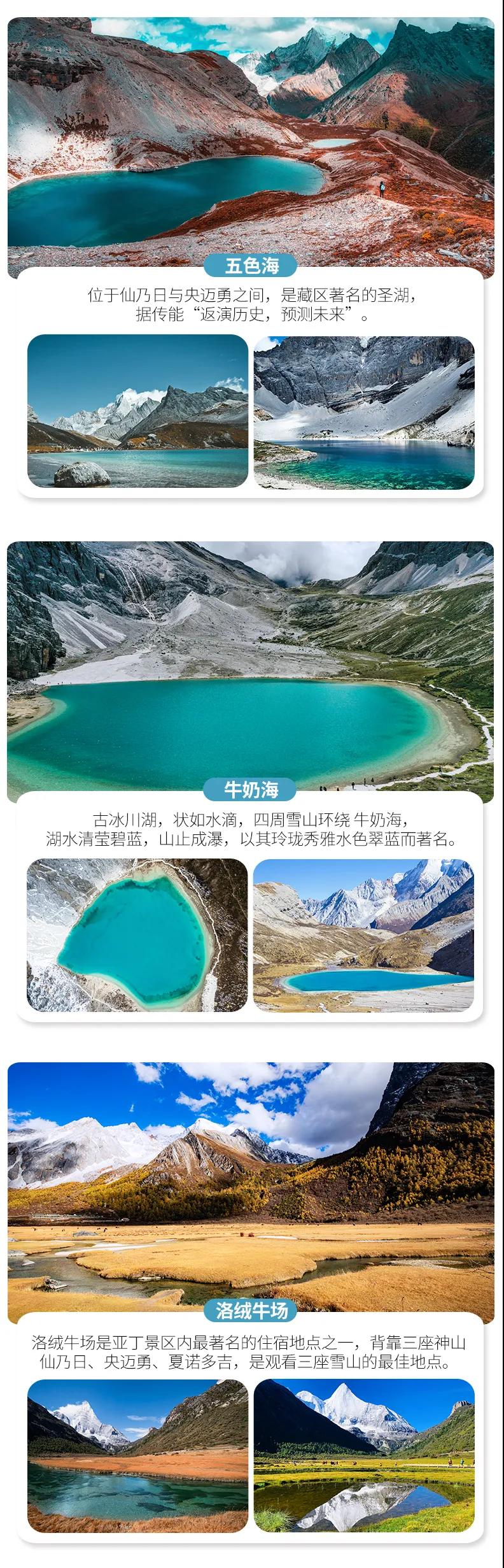 D6 亞丁村/香格里拉鎮(zhèn) — (約13公里/1小時)亞丁風(fēng)景區(qū)洛絨牛場 — (460米/3分鐘)牛奶海 — (約511米/7分鐘)五色海 — (約124公里/5小時)稻城縣