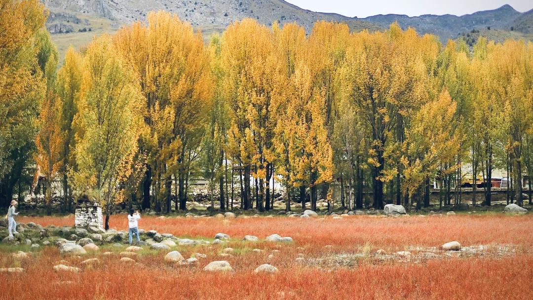 隨后沿318國道一路向東,翻卡子拉山、剪子灣山、經(jīng)雅江縣城后,過高爾寺山隧道,抵達(dá)【新都橋鎮(zhèn)】,新都橋鎮(zhèn)地處在公路318國道南、北線分叉路口,如遇天氣晴好,這里是一片如詩如畫的世外桃源。神奇的光線,無垠的草原,彎彎的小溪,金黃的柏楊,山巒連綿起伏,藏寨散落其間,牛羊安詳?shù)爻圆荨ㄎ鞯钠皆L(fēng)光美麗地綻放。