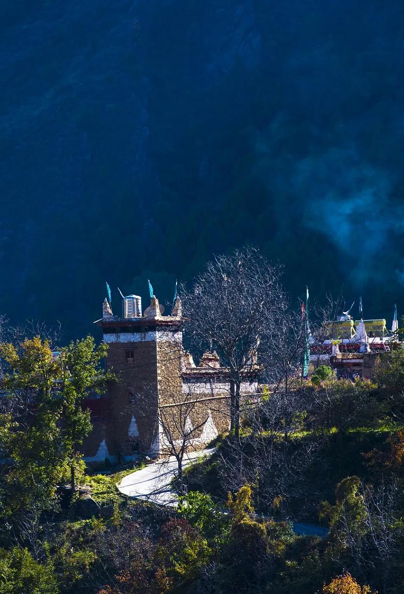 雙橋溝游覽結(jié)束后,我們前往到甘孜藏族自治州東部的丹巴縣【甲居藏寨】,2005年《中國國家地理》雜志組織的選美中國活動中,以甲居藏寨為代表的“丹巴藏寨”被評為“中國最美的六大鄉(xiāng)村古鎮(zhèn)”之首。這是最具嘉絨藏族特色的村寨,“甲居”藏語是百戶人家之意,藏寨建筑運(yùn)用紅白黑色,依山而建,從大金河谷層層向上攀緣,一直伸延到卡帕瑪群峰腳下,整個山寨依著起伏的山勢迤邐連綿,在相對高差近千米的山坡上,一幢幢藏式樓房灑落在綠樹叢中,配上藍(lán)天白云,金黃的玉米,滿樹果子,景色非常壯觀。