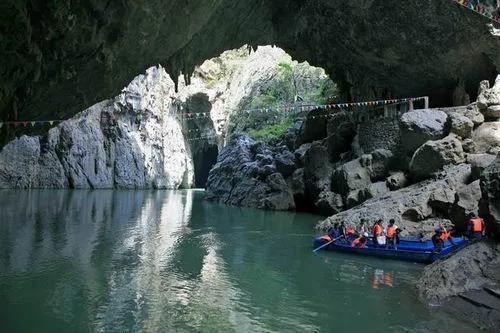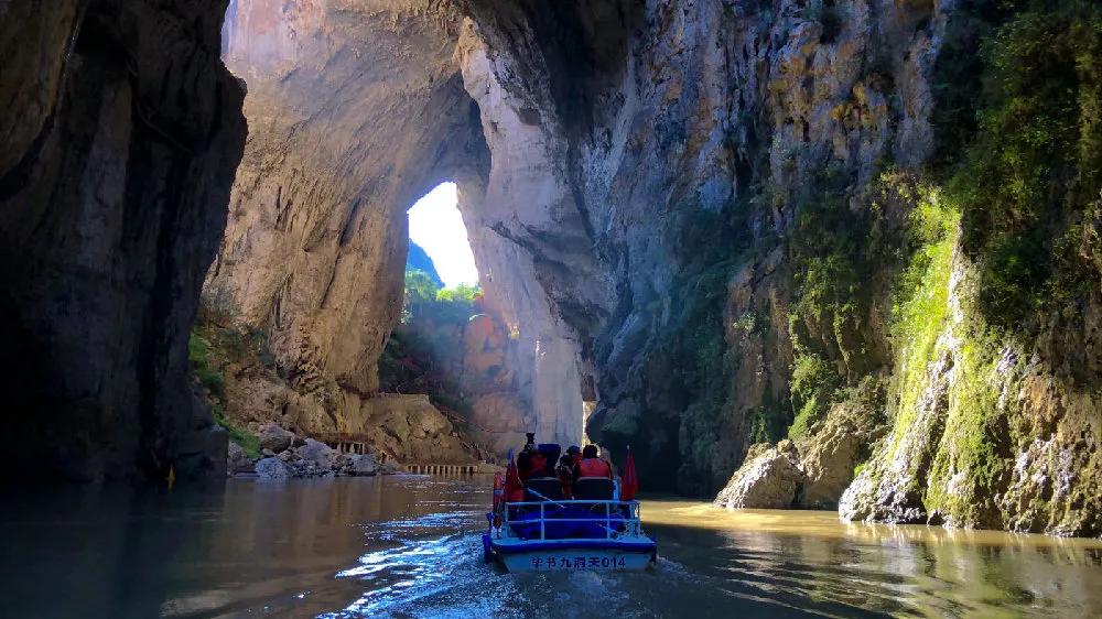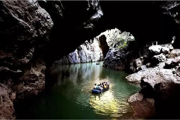 早餐后,乘車約2小時抵達(dá)【九洞天景區(qū)】(游覽時間約3-4小時)景區(qū)生態(tài)景觀秀美、溝壑縱橫、植 被發(fā)育、伏流明暗交替,洞洞相連,組合成集溶洞、伏流、天窗、天坑、峽谷、天生橋、懸崖、絕壁、峰叢幽谷等為一體的雄奇瑰麗的巖溶大觀。在這一段長約2公里的六沖河河道上,箱形切割頂板 多處塌陷,形成了多個形狀、大小各異的天窗、天坑,是已發(fā)現(xiàn)的天窗天坑最密集的溶洞群,是可供乘船游覽最高大的溶洞群。