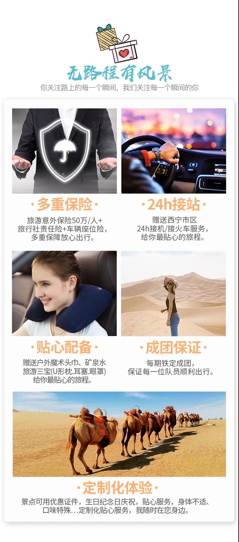 贈送 :贈送戶外魔術頭巾、旅游三寶(頸枕耳塞眼罩)、礦泉水;贈送西寧市區(qū)24小時接機/接火車服務。(贈送項目不用費用不退)