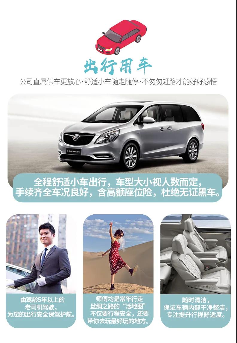 VIP私享6人小團,全程商務車出行,保證一人一正座位,車型大小根據(jù)實際人數(shù)安排,且由駕駛經(jīng)驗豐富的司機為您的出行保駕護航,報價包含車費、油費、停車費、維修費及司機勞務費。